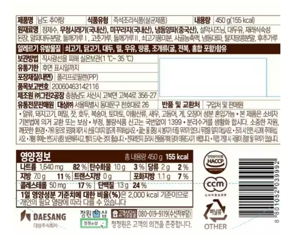 Cheongjeongwon Namdo Chueotang (450g) – Dive into Authentic Korean Flavor