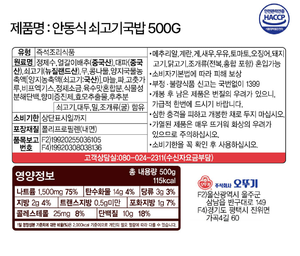 Ottogi Andong-Style Beef Gukbap 500 g – Hearty, Spicy Beef & Rice Soup